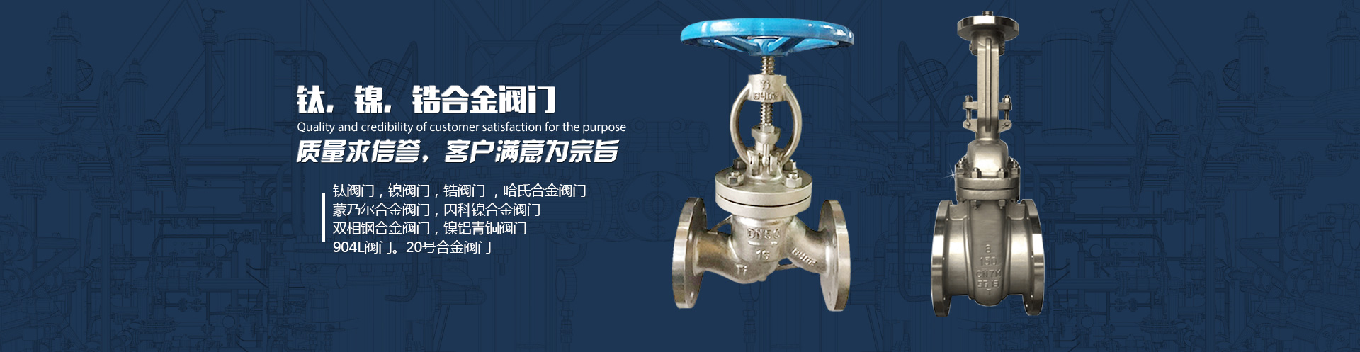 公司的主導(dǎo)產(chǎn)品特殊材料系列閥門有:鈦和鈦合金系列閥門、鎳及鎳合金系列閥門(哈氏合金、蒙乃爾合金、英科乃爾合金)、鈦閥門、鈦合金閥門、鈦球閥 ,鋯材、鉭材、雙相鋼、C4鋼、ALLOY20合金及鎳基合金閥門等......?查看詳情>>